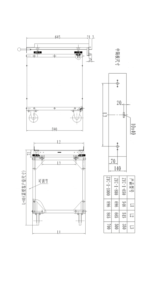 Fixed transfer trolley, available in three widths: 650 / 800 / 1000 mm, with fixed height