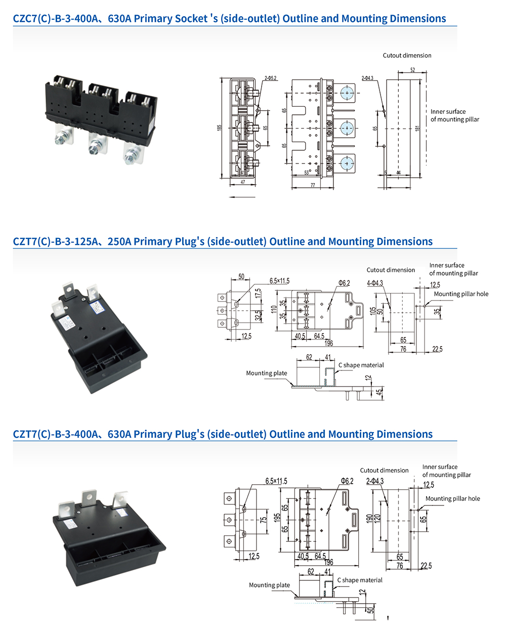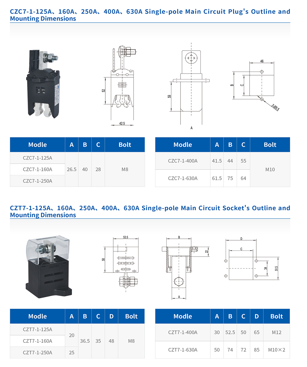 The patent-protected CZ C/T series primary connectors are engineered to meet specific market demands. Featuring enclosures of high-grade DMC or PA66 for superior strength, insulation, and flame retardancy, they fully comply with JB/T 10323-2016.