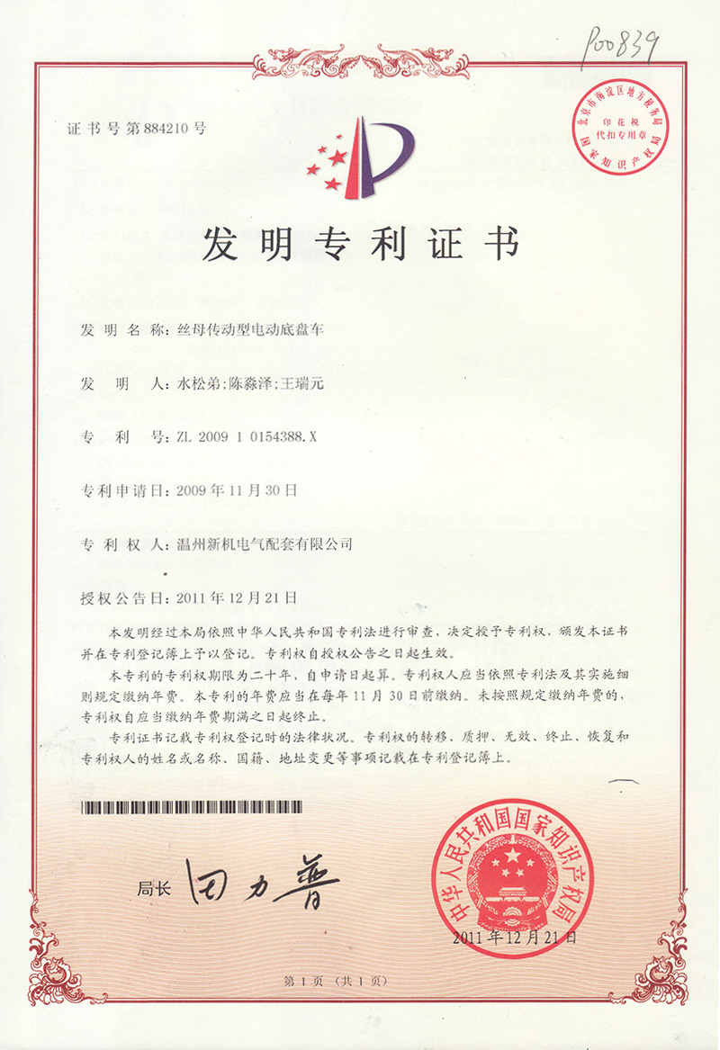 including 102 chassis vehicle patents, 59 operating mechanisms, and 17 other products