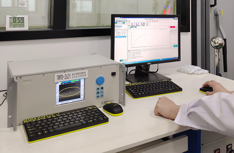 Dozens of experimental equipment, including electronic digital display springs, tensile and compressive testing machines, partial discharge detectors, helium mass spectrometer leak detectors, etc